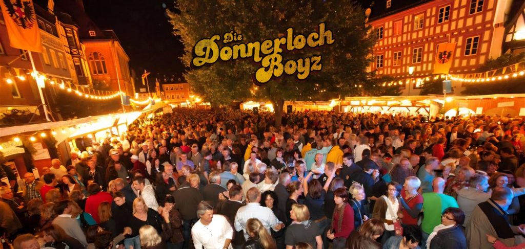 DIE DONNERLOCH BOYZ and Girl spielen am Samstag, den 04.10.2025, von 20:00 – 00:00 Uhr, auf dem Marktplatz, in Boppard, auf dem dortigen Weinfest. Gegen 21:15 Uhr fackelt die Stadt ein Feuerwerk extra für die Boyz ab und dann geht´s weiter. Der Eintritt ist frei, es wird Gastmusiker geben und das Ambiente vor Ort ist traumhaft schön!